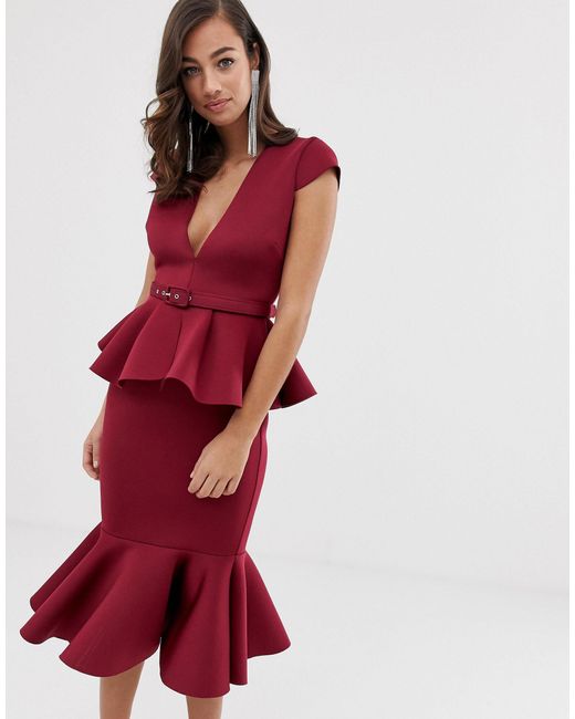 ASOS Denim Belted Peplum Detail Midi pep hem midi dress