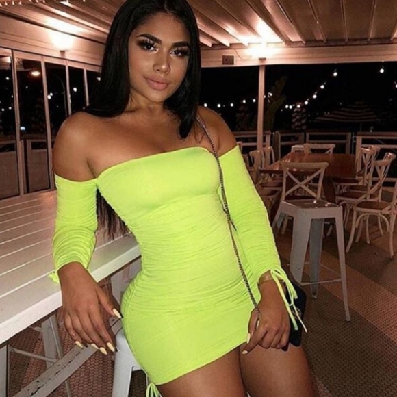 Dresses | Neon Green Bodycon Dress neon green bodycon dress long sleeve