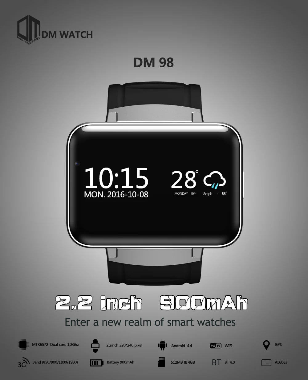 DOMINO DM98 2.2 inch Android 4.4 3g smartwatch domino dm98