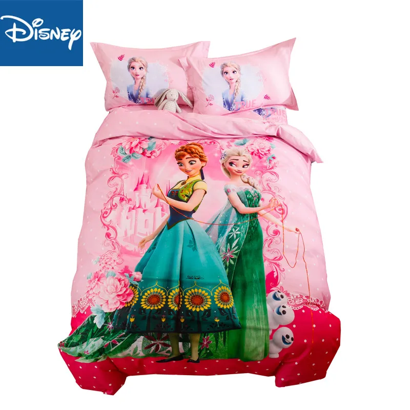 Pink Frozen cartoon bed sheet set 4pc kids full size sheet sets