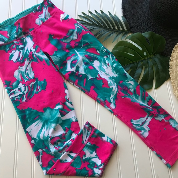 adidas Palm Leaf Pink \u0026 Green Leggings adidas palm print blue leggings