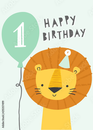 Cute lion first birthday greeting card first birthday greeting card