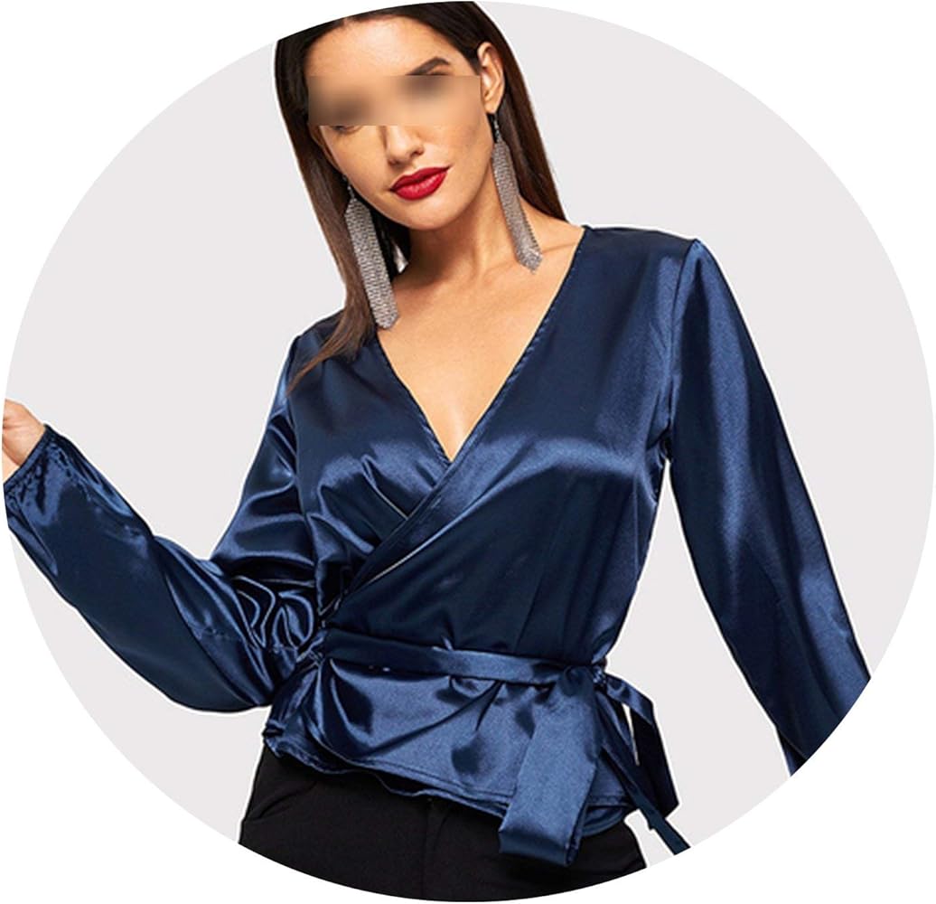 Wrap blouse. | Wrap blouse, Fashion satin wrap shirt