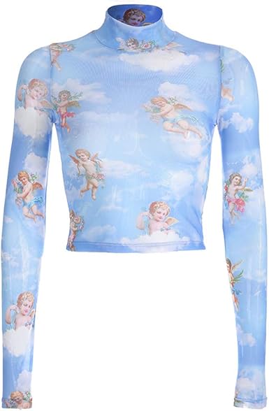 high neck long sleeve crop top cupid mesh top