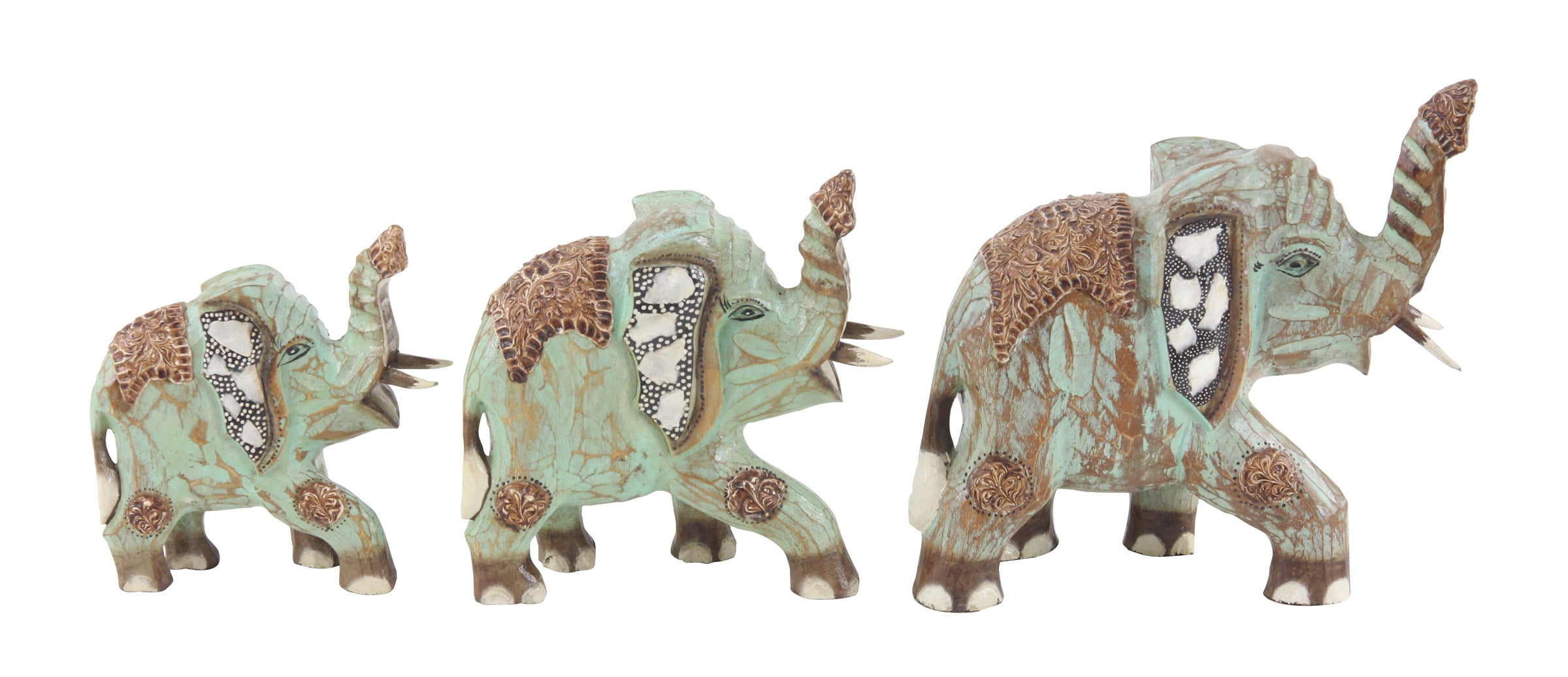 Inch Wooden Elephant Sculptures - Set wooden elephant set