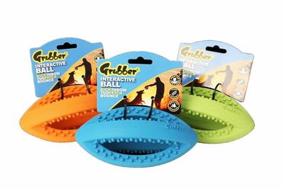 INTERACTIVE RUGBY GRUBBER BALL TOUGH grubber dog toy