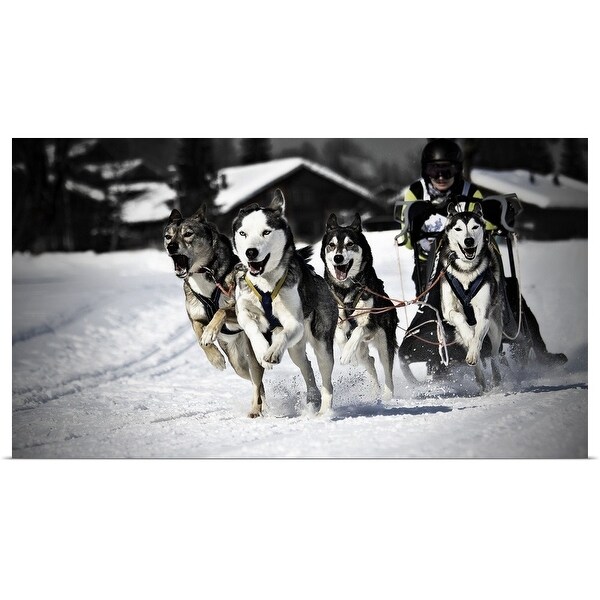 Shop Man with group of dogs mushing in mushing shop