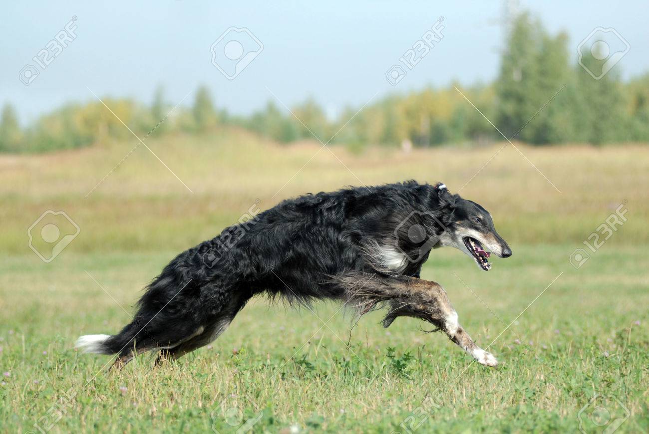 Borzoi Running On The Grass Stock Photo borzoi running
