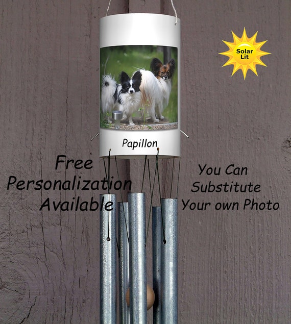 Wind Chimes: Papillon wind chime Dog dog memorial solar light