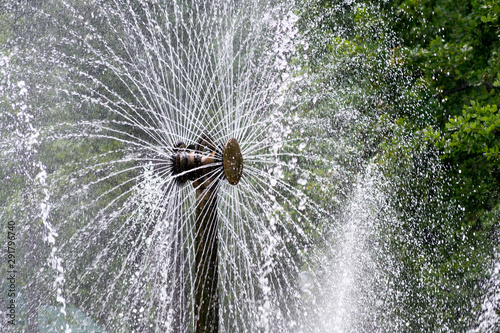 Detail of a rotating fountain spraying 360 water fountain
