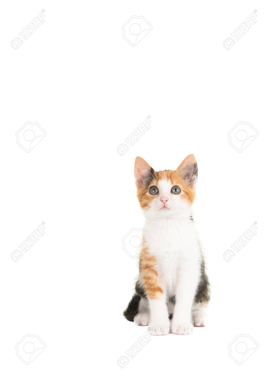 Cute Young Tortoiseshell Cat Looking Up white tortie cat