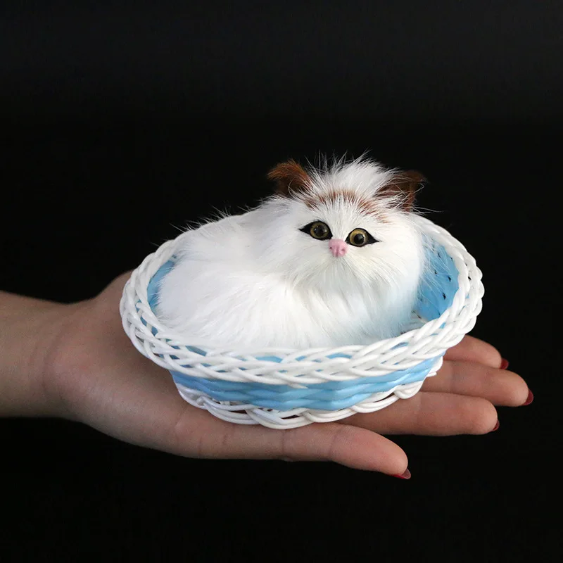 Stuffed Toys Simulation Animal Doll sleeping cat in basket toy