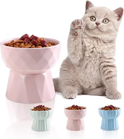 Jemirry Raised Cat Bowls, Elevated Cat cats putting food in water bowl