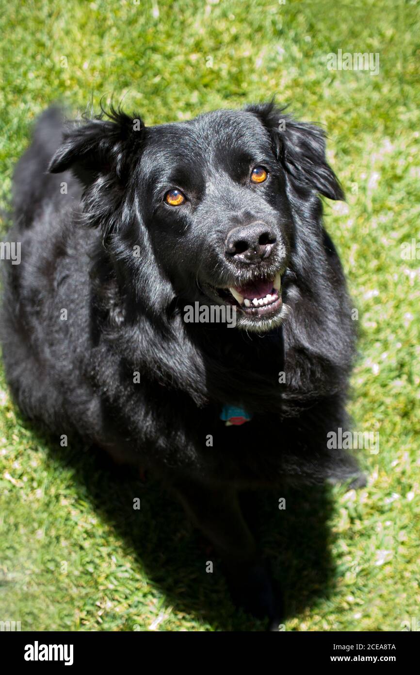 Beautiful fluffy large black dog newfoundland shepherd dog