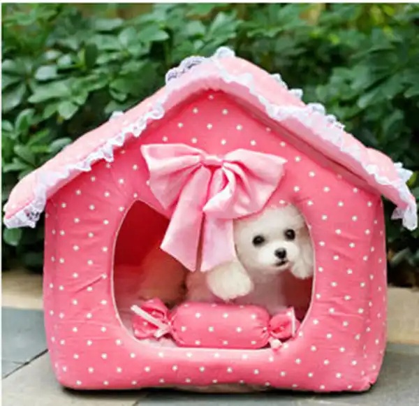 New pet dog cat cute dot bowknot house cute puppy supplies