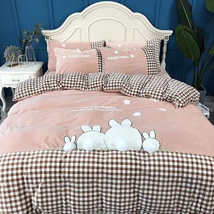 Klerokoh Four Sets of Rabbit Embroidery rabbit bedding for winter