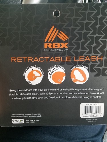 RBX Retractable Dog Leash Red color for rbx dog harness