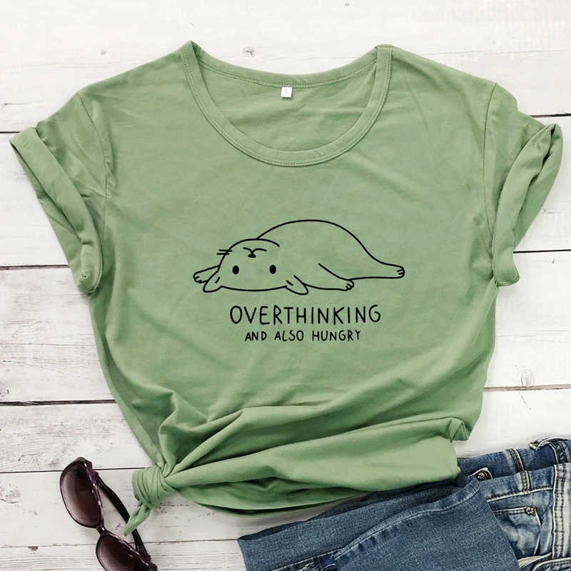 Overthinking And Also Hungry Lazy Cat T cat slogan t shirts