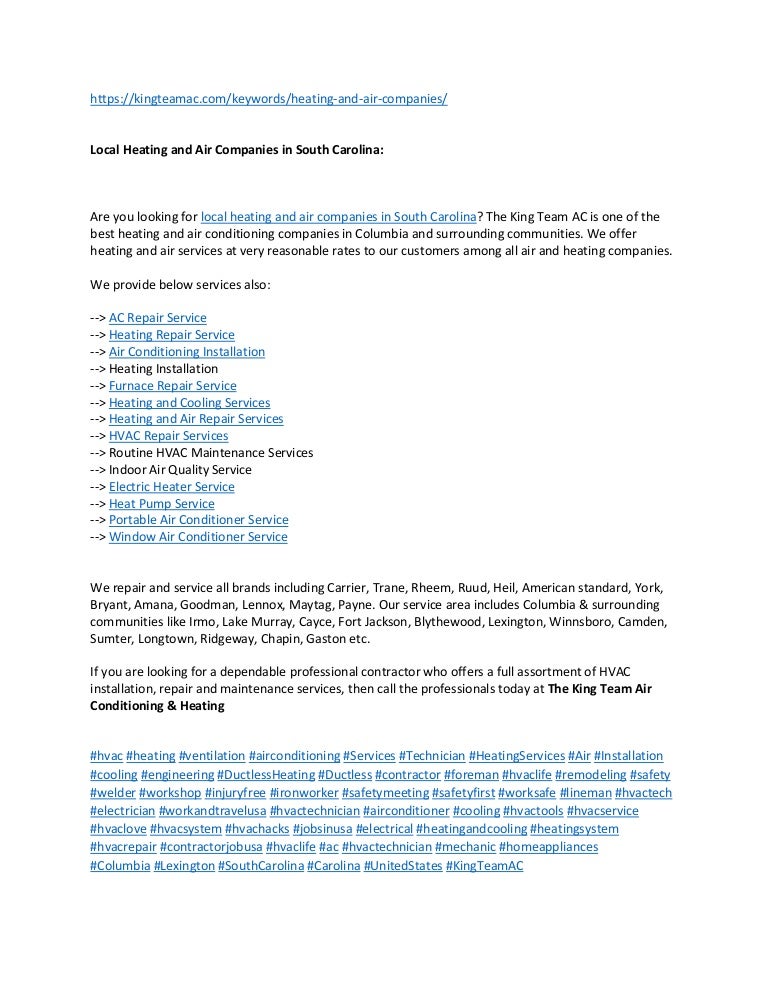 Local Heating and Air Companies in king heating and air