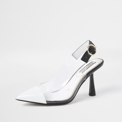 White mid heel sling back court | River white court shoes mid heel