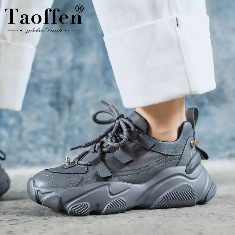 Taoffen Real Leather Women Sneakers round toe casual sneakers