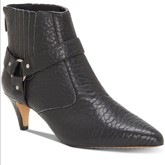 black leather kitten heel ankle boots