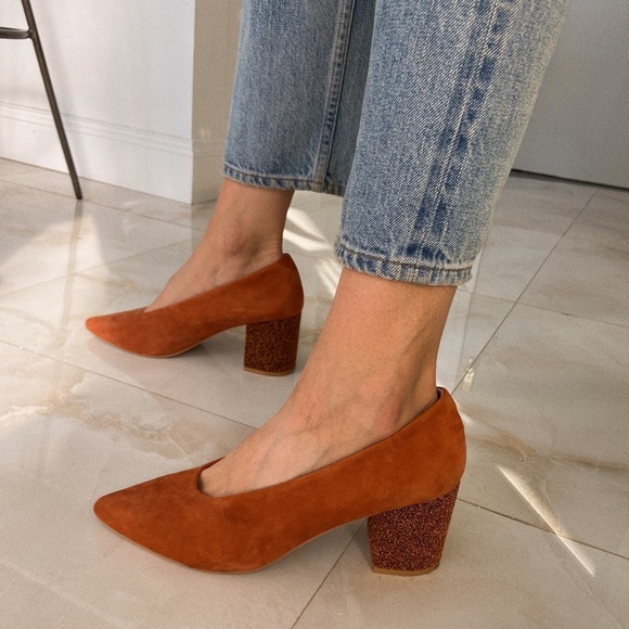 burnt orange block heel shoes