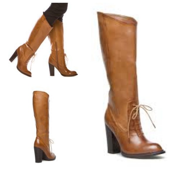 Hush Puppies Vivianna Tan Leather Lace victorian inspired lace up boots