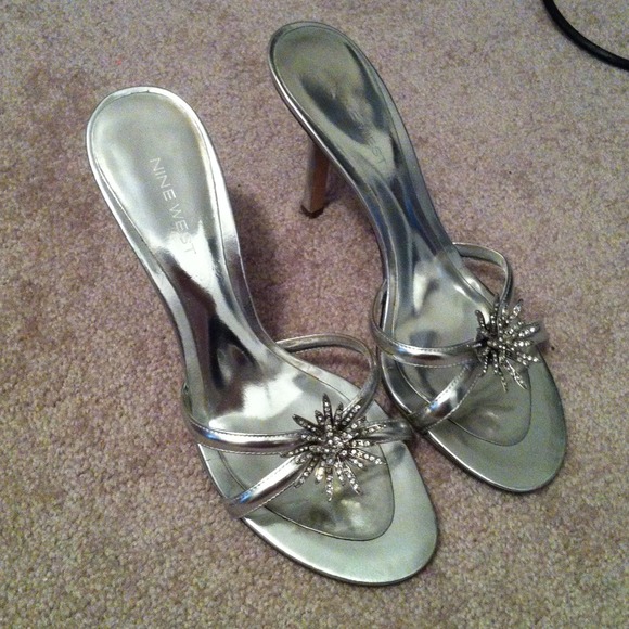 Nine West Shoes | Nine West Silver Slip high heels with no back