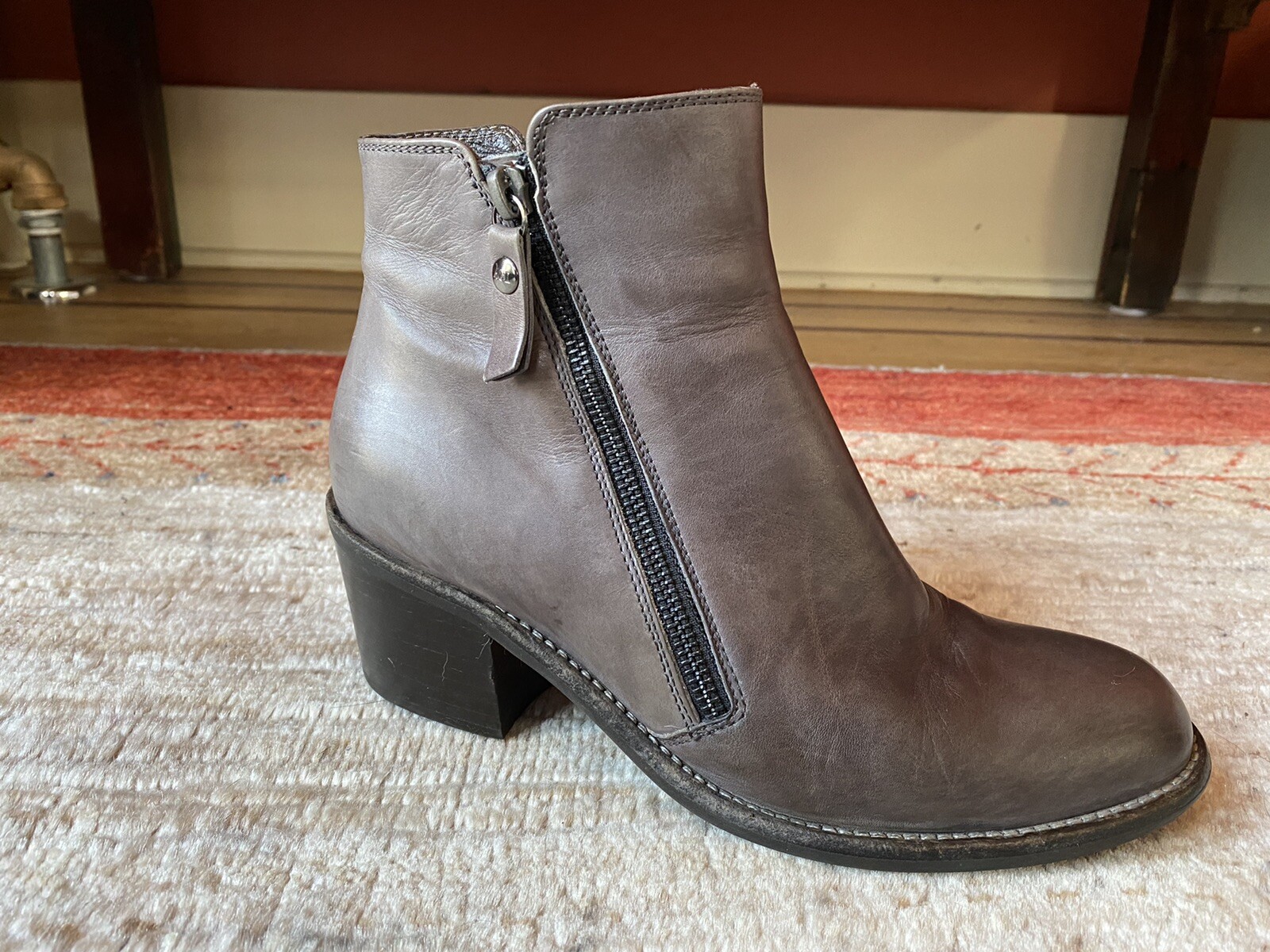 AGL Ella Block Heel Winter Grey Leather agl block heel bootie