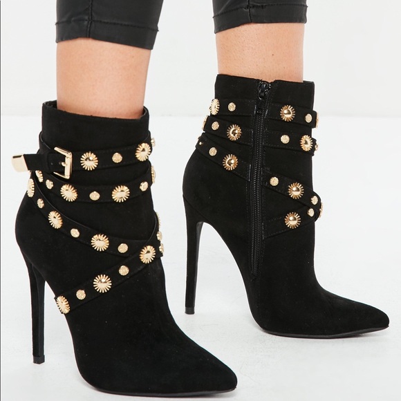 Gold Studded Straps Ankle Boots black gold studded boots
