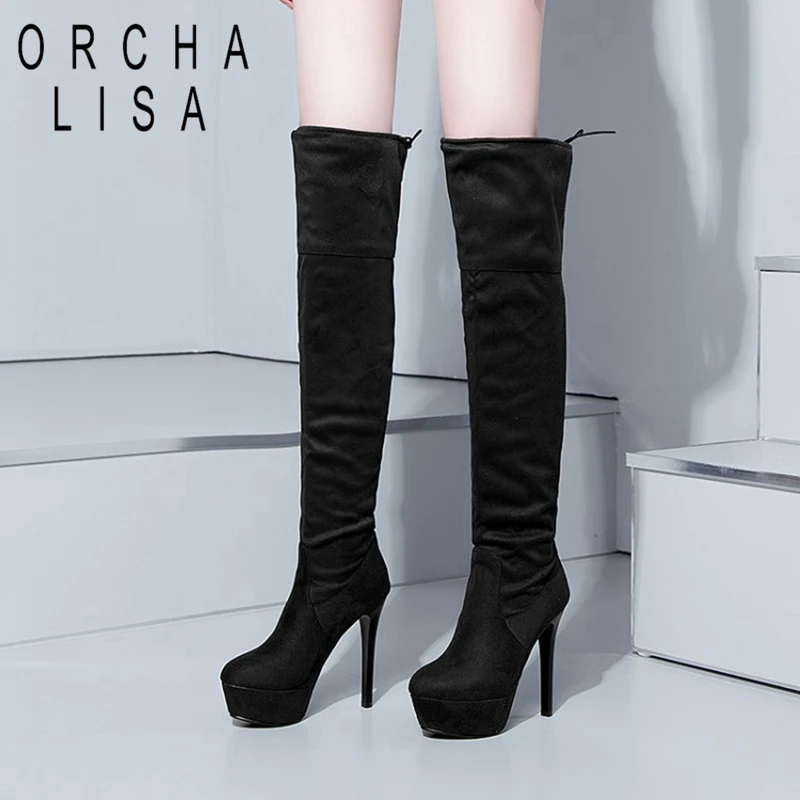 ORCHA LISA Sexy over knee boots black black thin heeled boots