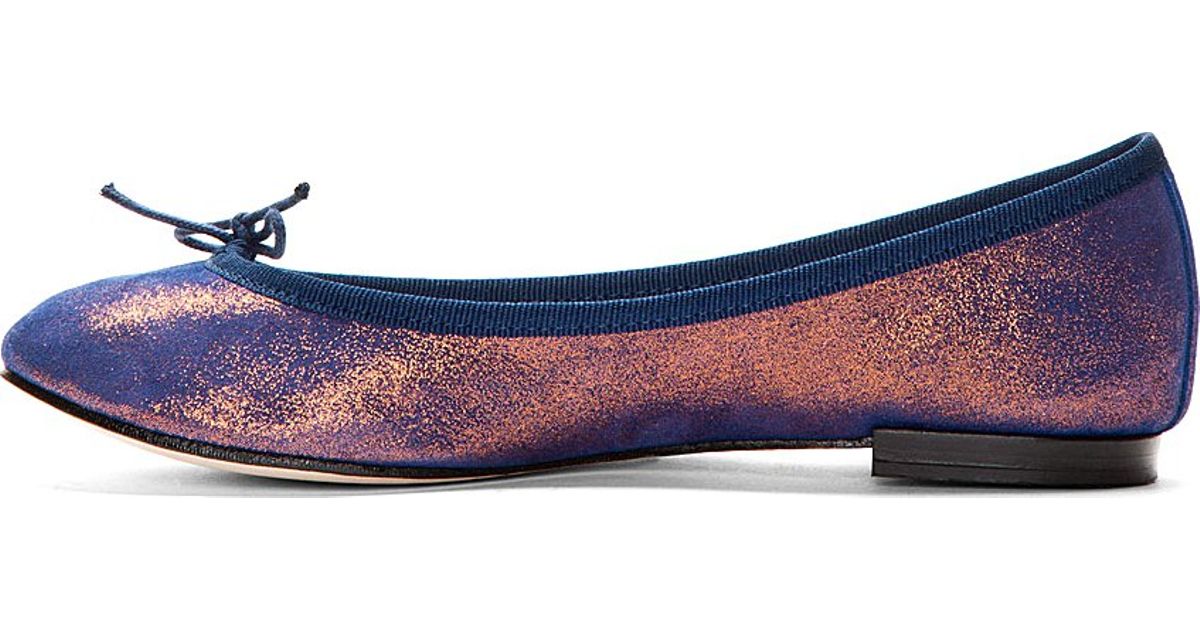 Repetto Blue Leather Iridescent iridescent ballet flats