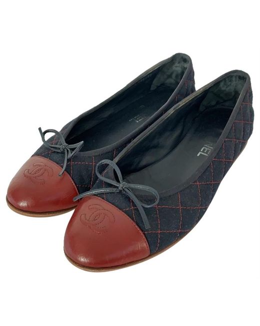 Chanel Denim Navy Blue With Burgundy burgundy flats