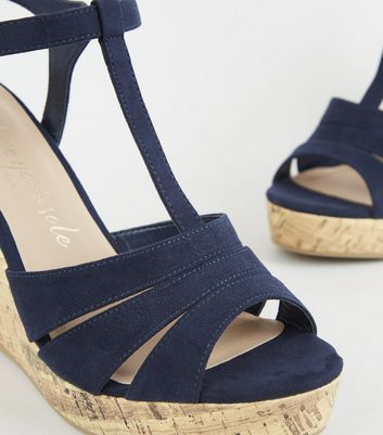 Wide Fit Navy Suedette Strappy Cork new look navy wedges