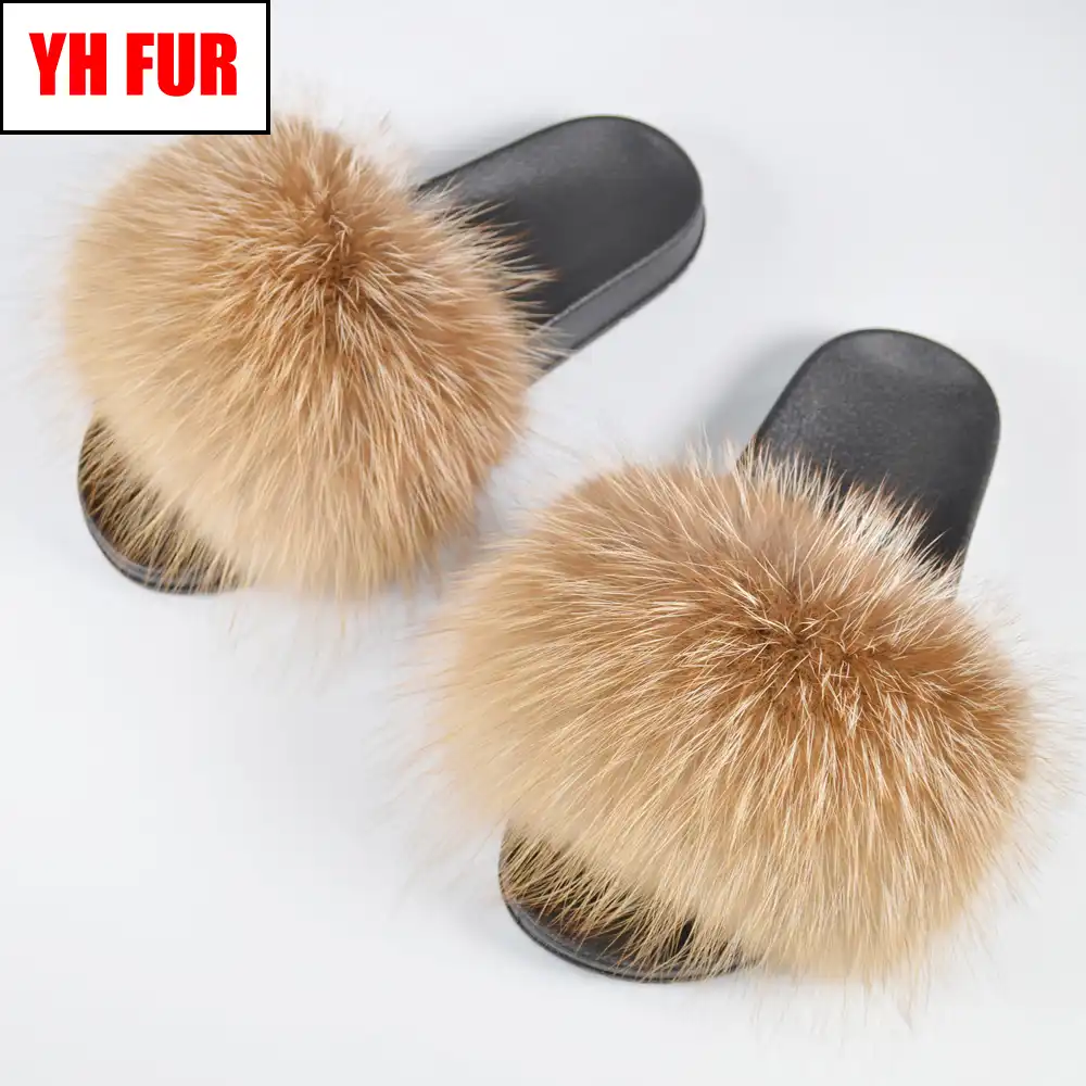 Hipretty Women's Real Fox Fur Slides genuine fur slides
