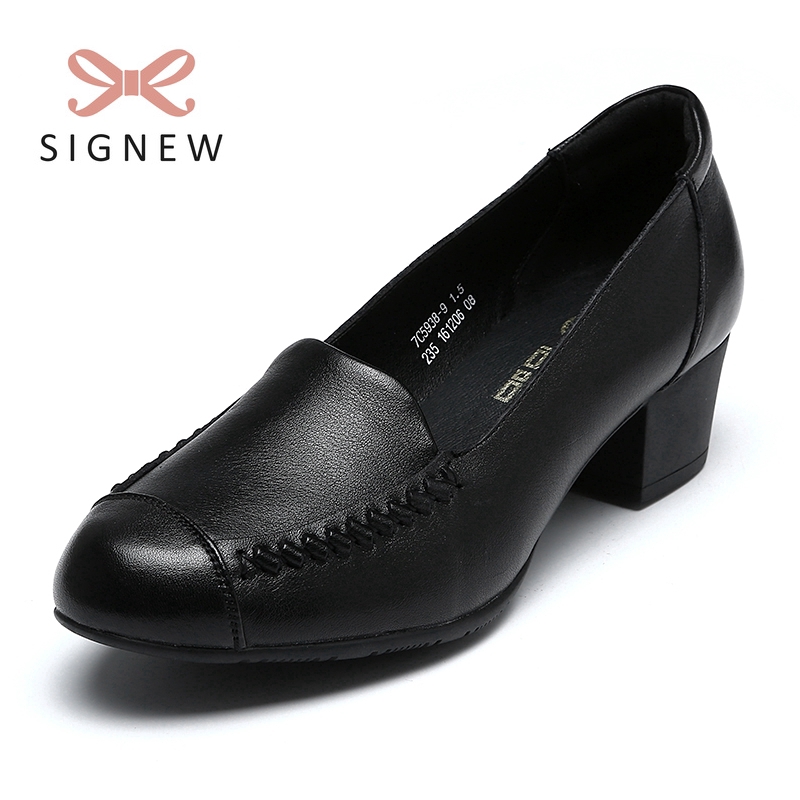 Women's leather heel shoes soft-soled comfortable womens work shoe