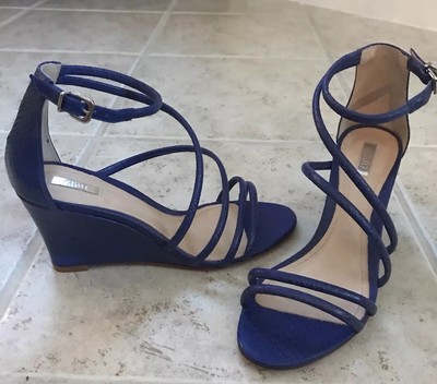 Schutz Blue Leather Strappy Wedges made blue strappy wedges
