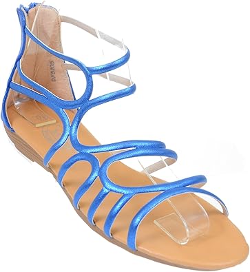 Fourever Funky Blue Gladiator Metallic blue strappy wedges
