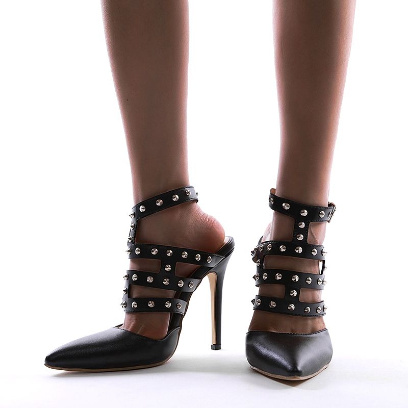 DiJiGirls Women Rivet Pumps Pointed Toe stiletto 12 cm