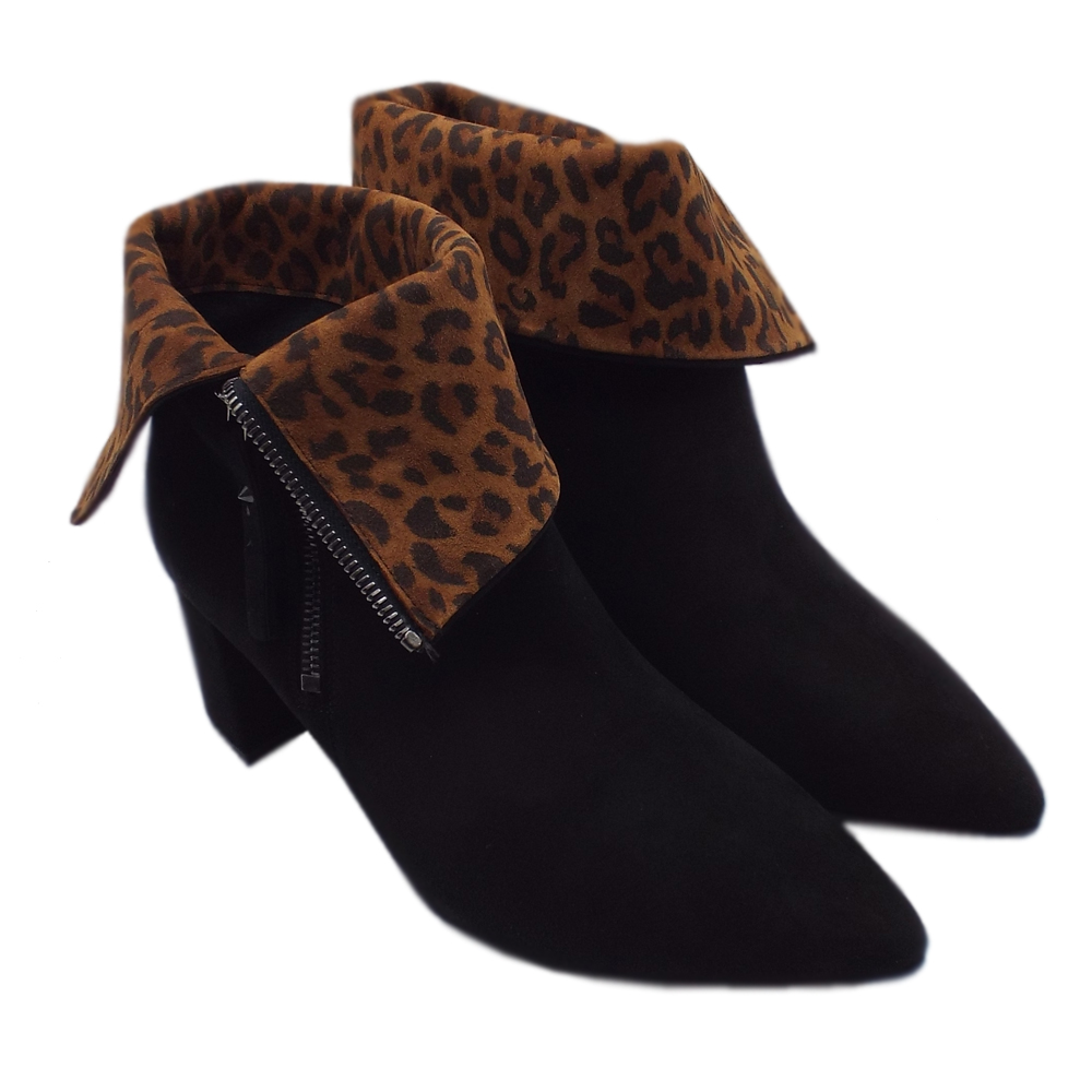 Baka Fashion Collar Ankle Boot in Black peter kaiser leopard print shoes