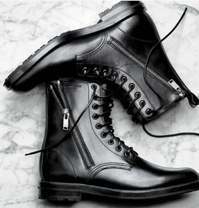 Handmade Men Black Lace Up \u0026 Zipper mens military style boots