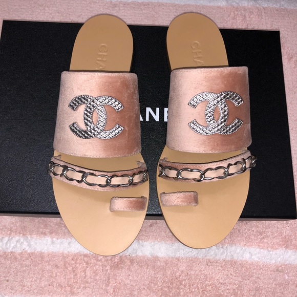 chanel velvet sandals