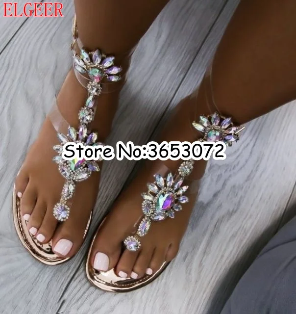 Accessorize clear flat sandals with clear embellished sandals
