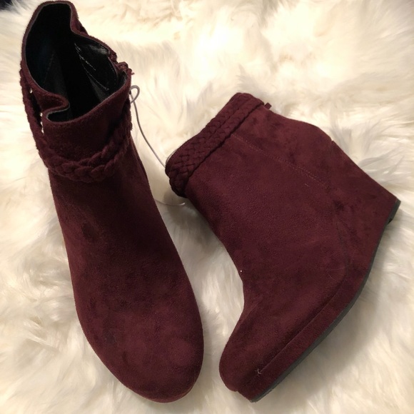 Nwot Burgundy Wedge Booties
