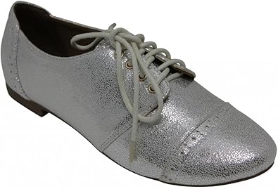 Anna Mandy-3 Women's Dress Flat lace up metallic silver loafers womens