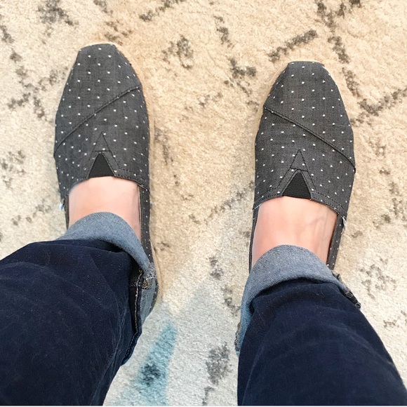 Dot Chambray Womens Espadrilles | Poshmark toms black dot chambray