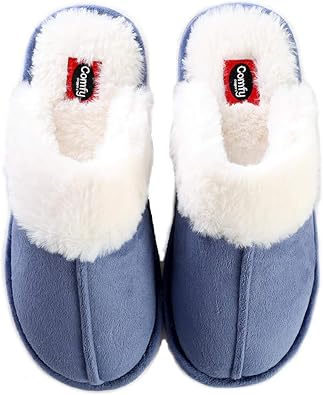 DL Womens House Slippers Memory Foam bedroom slippers with fur