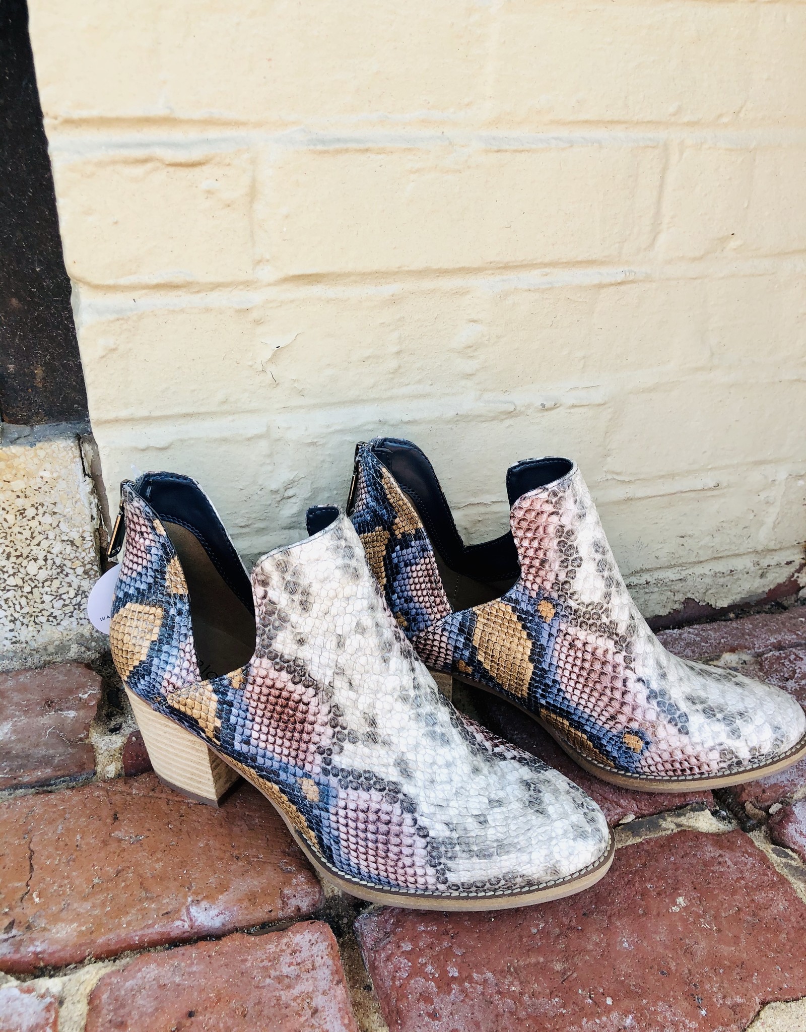 The Cora Snake Print Bootie snake pattern booties