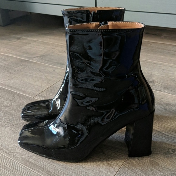 faux patent leather booties